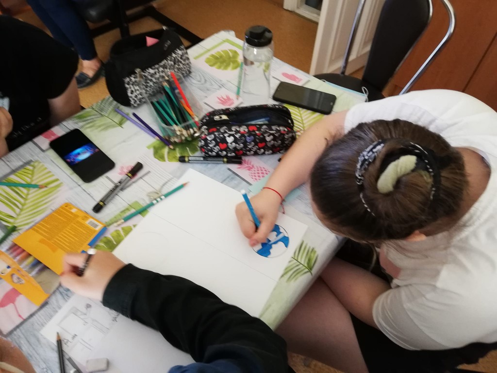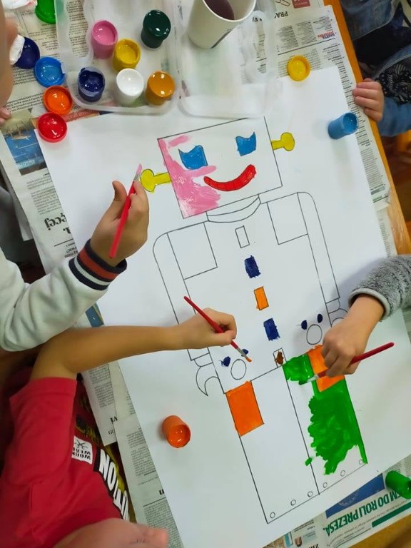 Klasa IIb tworzy ilustracje do teatrzyku kamishibai do opowiadania "Iwonka".